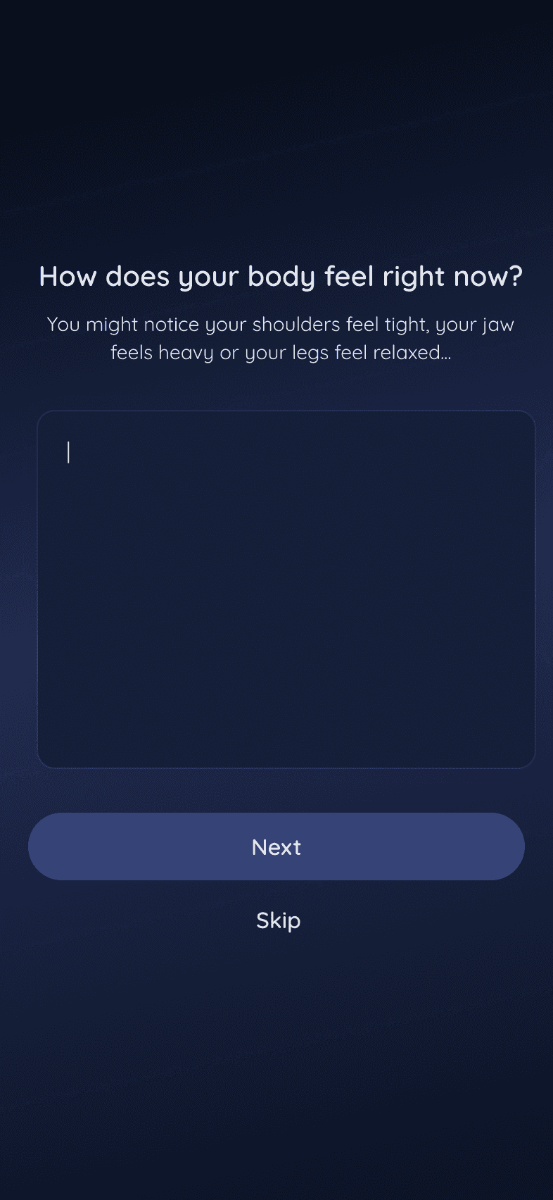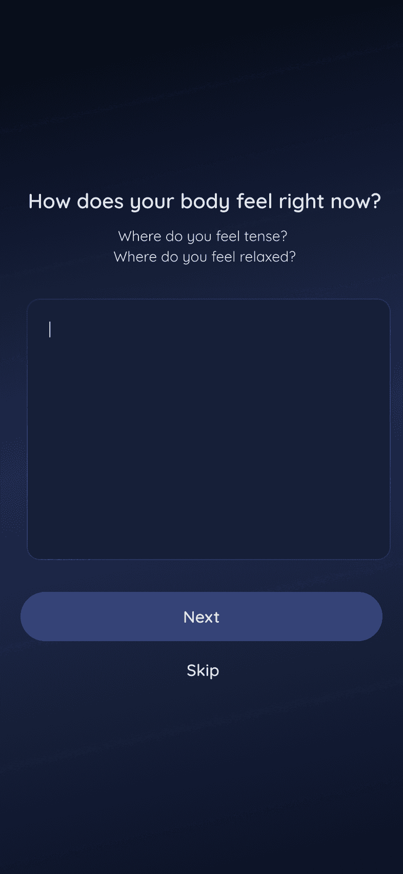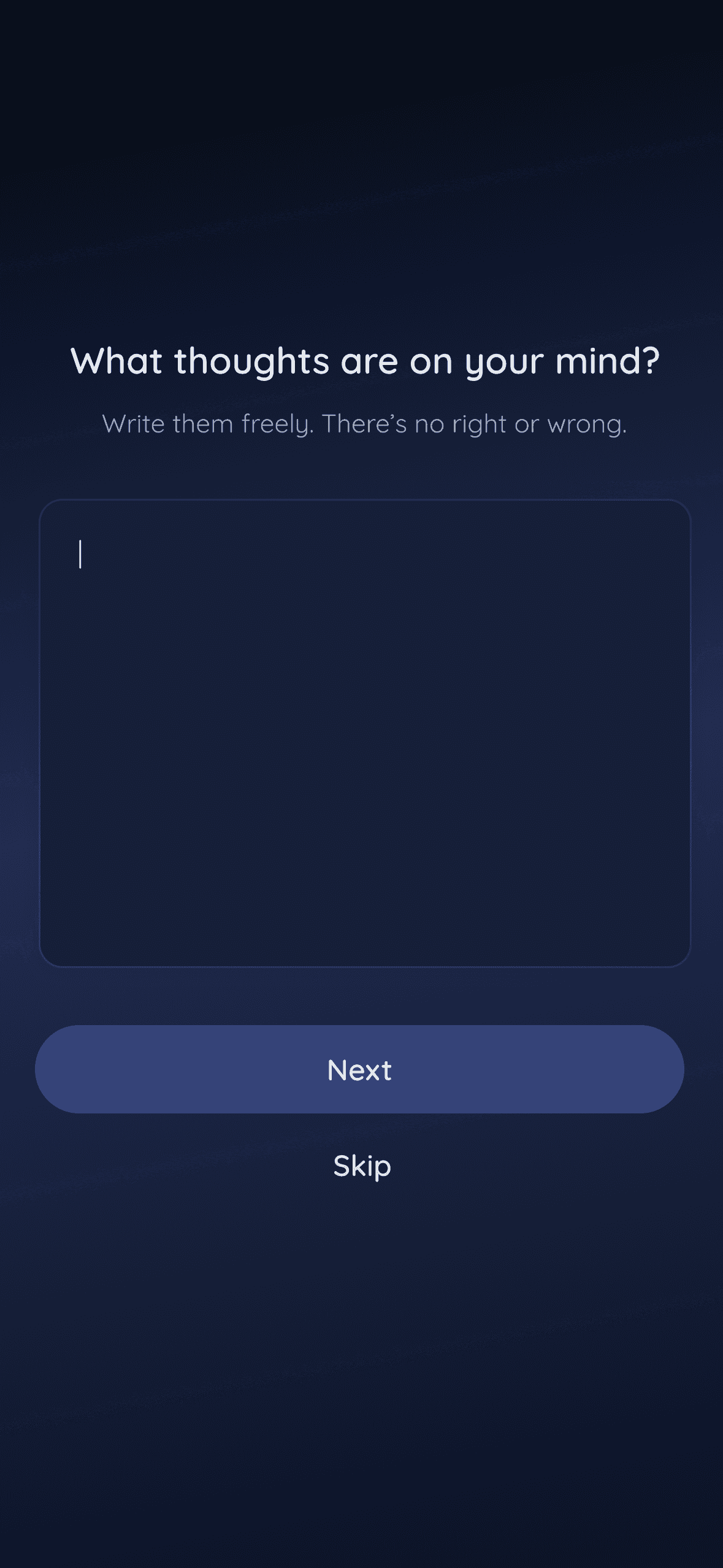 The app guides users through three short journaling prompts, giving the mind a moment to process and release anxious thoughts before sleep.